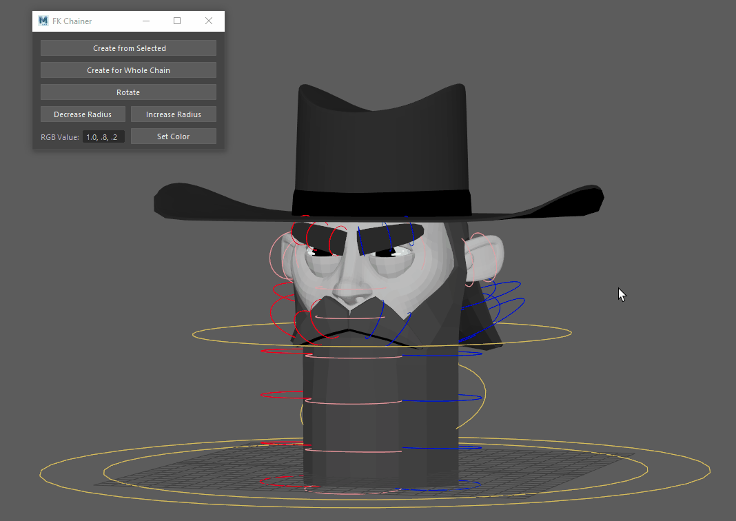 - updated Decrease/Increase Radius functions to work on duplicated rig (controls without history) or any curve really. Go crazy with reshaping your controls!